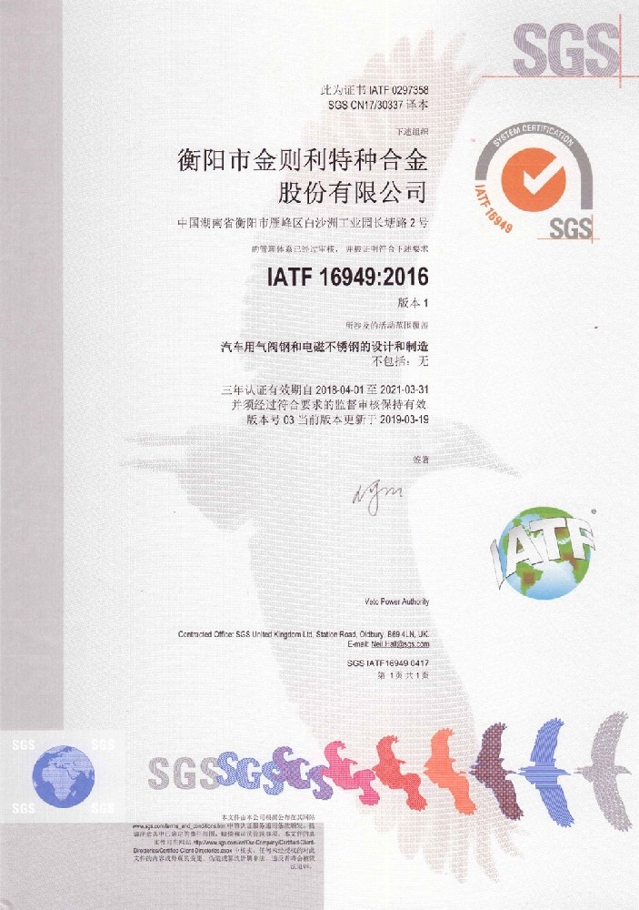 衡陽市金則利特種合金股份有限公司成立于一九九九年十二月,注冊資本人民幣兩千兩百萬元。注冊地址:衡陽市雁峰區(qū)白沙洲工業(yè)園長塘路2號(hào)。公司主營耐蝕軟磁合金,為湖南省高新技術(shù)企業(yè)。公司自成立以來,即致力于耐蝕軟磁合金的研發(fā)。 研制出的JL-31(00Cr13si2Pb)、JL-31B(00Cr13si2)、JL-31BS(00Cr13Si2S)、JL-37B(0Cr17Si2)、JL-37(0Cr17···